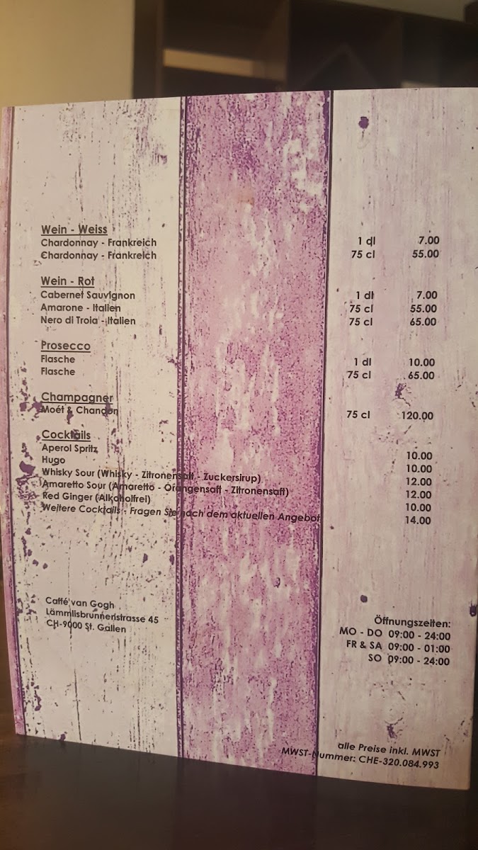 Caffe Van Gogh Menu